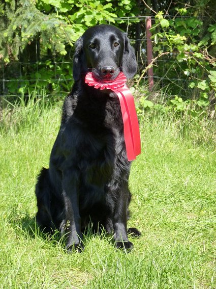 Mit dem Einzug von Zoukie ist im Mai 2009 ein lang ersehnter Wunsch für mich in Erfüllung gegangen. Seit dem Beginn meiner Ausbildung zur Hundetrainerin am Institut für Tierheilkunde in Viernheim habe ich erst Bücher und Rassestandards gelesen und bin dann über den Golden Retriever - Gott sei Dank - auf der Homepage des DRC e.V. gelandet und somit schließlich überhaupt erst auf den Flat aufmerksam geworden. Nachdem ich dann in einem Seminar eine Flatdame persönlich kennen lernen durfte, war es endgültig um mich geschehen und mir war klar: so einen Hund will ich auch!